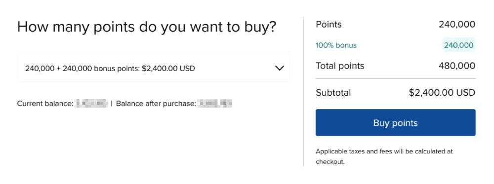 購買 5,000 點以上即可獲得額外 100% 獎勵。此次促銷的購買點數上限是 24 萬點,額外獲贈 100%,總共可獲 48 萬點,價格是 $2,400 美金。